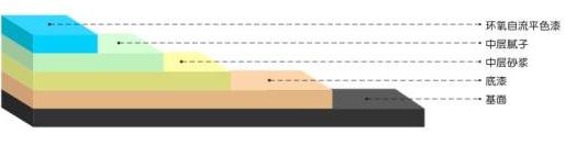5.麵 塗:用镘刀將環氧樹脂自流平麵料镘塗於中塗之上(參考用量0.8-1.5 kg/㎡)。