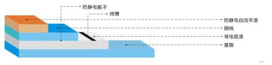 | 適應範圍:電子、微電子、通訊、無塵榴莲视频在线观看污室、電子組件生產區,半導體車間、機房、航天等領域需要防靜電的場所,特別適用於對靜電高敏感的電子儀器,集成電路等電子元器件的生產車間和存放區域的防靜電地坪處理。 產品詳情 性能特點 1、擁有環氧樹脂地板優異的機械和抗化學性能; 2、可快速排泄靜電電荷,表麵電阻率達到105-109Ω,地麵電阻排泄符合國際GB6650-86A標準; 3、表麵電阻穩定持久,不受天氣濕度和表麵磨損影響; 4、厚度1mm—5mm。 施工工藝 1.原地麵:打磨、吸塵處理; 2.底 塗:塗刷1-2遍環氧防靜電底漆(參考用量0.2-0.6 kg/㎡); 3.導電銅箔:按設計鋪設接地銅網; 4.中 塗:環氧樹脂中塗自流平防靜 電料刮平(參考用量0.6-0.8 kg/㎡); 5.麵 塗:用镘刀將環氧自流平防靜電料镘塗於中塗之上(參考用量0.8-1.5 kg/㎡) 技術指標