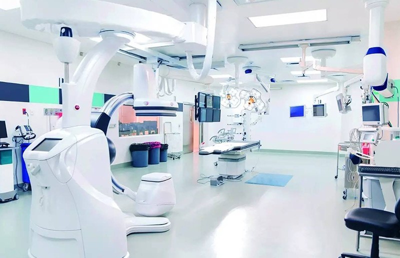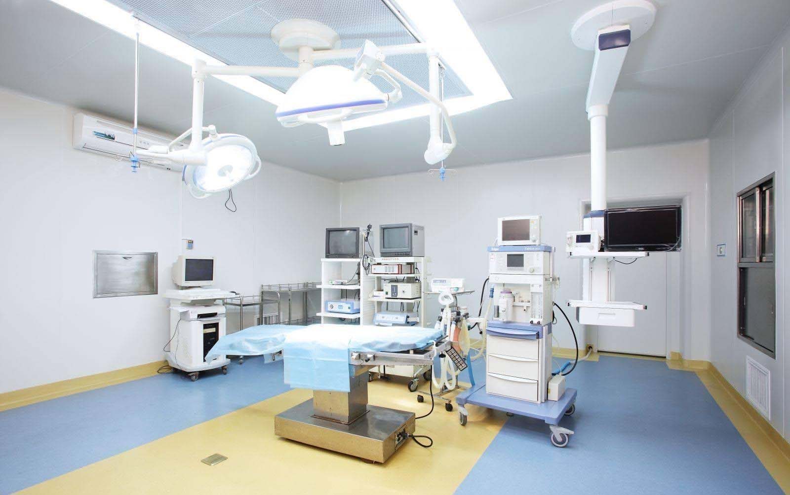 手術室、潔淨走廊、輔助用房的地麵采用抗靜電、抗腐蝕、耐磨、色澤統一的2毫米PVC卷材,手術室四周翻邊高度120毫米。卷材拚縫均為熱焊熔接,平整無縫,與牆體均為圓弧連接。